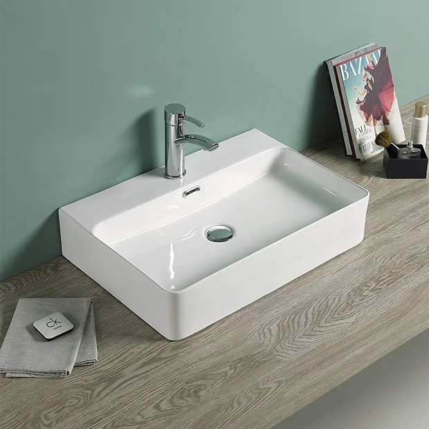 The modern shape of this stylish rectangular counter top basin with rounded corners will create a contemporary feel in any bathroom. Made from high quality vitreous china with a high gloss white finish, the basin has a single tap hole for mono basin mixers and is perfect for counter tops. Some small dimensional variation may occur due to manufacturing tolerances. Waste not included.