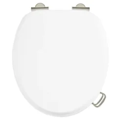 Looking to replace your noisy toilet seat? The Burlington Soft Close Toilet Seat with Chrome Hinges ensures loud bangs are a thing of the past. It’s designed for use with traditional white pans and will make an elegant addition to both modern and period bathrooms. Expertly manufactured from hardwearing moulded wood, the 370mm wide Burlington toilet seat has a smooth matt white finish for a classic appearance. This soft close toilet seat is super easy to install and only needs a quick wipe to keep it clean.