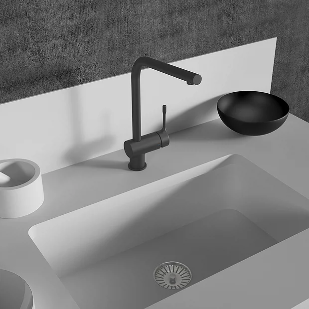 The Ceralook Silk Black Single L-Shape Spout Kitchen Mixer combines practicality and elegance that leaves nothing more to be desired. Its distinctive design sets the tone in every kitchen. The tap features BlueStart technology, when the tap is opened in the central position, only cold water flows with the hot water being saved unless actively selected by turning the lever. The FirmaFlow cartridge uses improved Click Technology with a mechanical stop to limit basin tap water flow to just the amount required for washing hands. This is even more efficient in maintaining flow consistency while reducing usage by up to 50%.