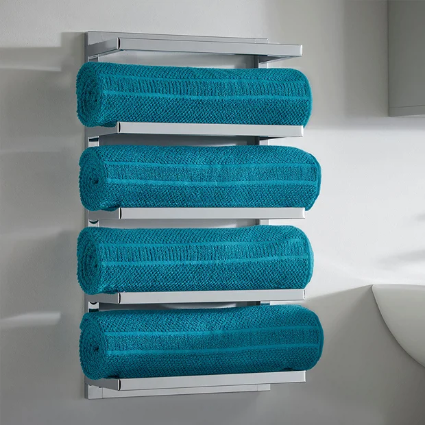 A great addition to the bathroom to keep your towels stored in a convenient place, the polished chrome Milan 5-tier wall mounted towel rack has a simple yet elegant design perfect for any bathroom.