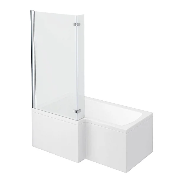 Milan L-Shaped Shower Bath 1500mm (Inc. Hinged Screen + Acrylic Panel)